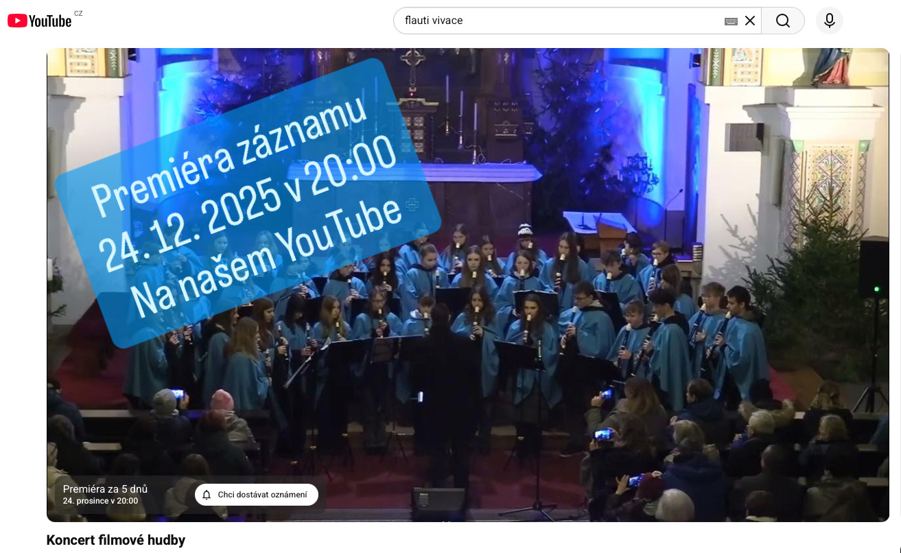 Premiéra záznamu koncertu filmové hudby ze dne 18. 12. 2025 bude na našem YouTube přímo na Ježíška🎁 24. 12. 2025 v 20:00 hodin.